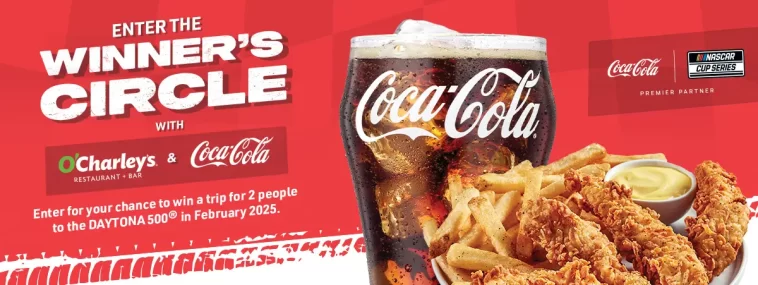 - Entry Method: Visit an O’Charley’s Restaurant + Bar and purchase any 16 ounce Coca-Cola Beverage from the menu. Scan the Quick Response code found on the beverage cup or go directly to https://www.cocacolapitstopsweepstakes.com/. Click on the link and complete the online entry form and submit.