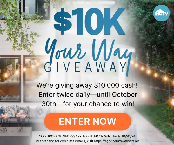 Want $10K? Enter the HGTV $10K Your Way Giveaway for your chance to win a cash prize (valued at $10,000)! Don’t miss out – enter today!