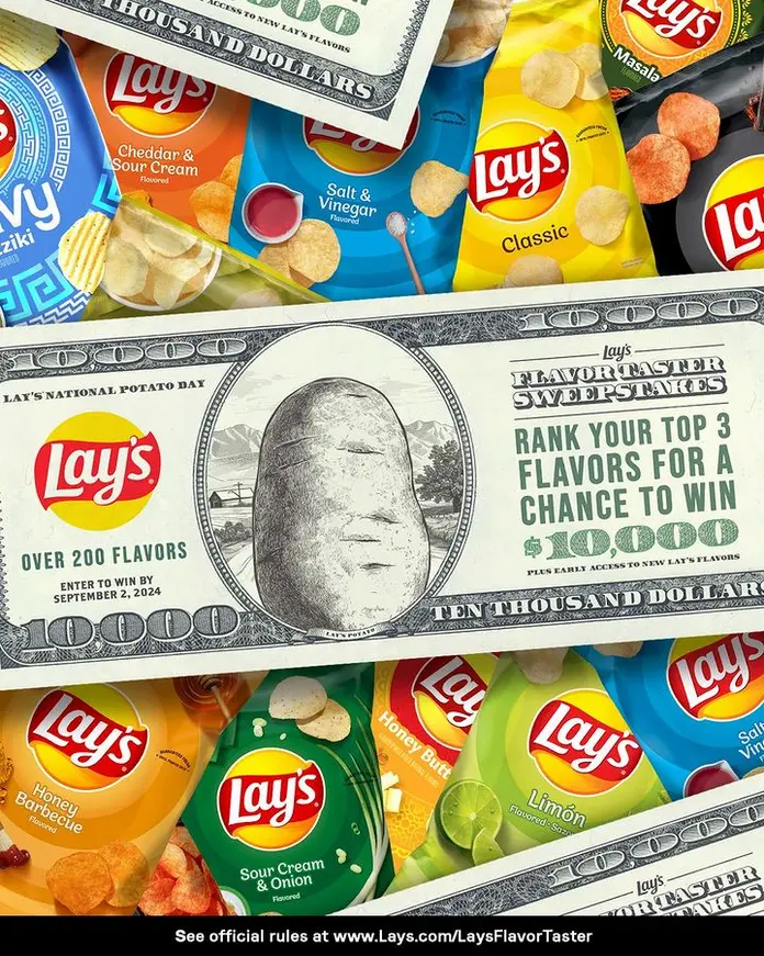 - Prizes: A check in the amount of $10,000 and early access to new flavors of Lay’s potato chips being released in 2025. Approximate Retail value of the Grand Prize: $10,050.